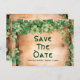 Diese Save the Date Postkarte für eine irische Hochzeit am St. Patrick's Day besticht durch ein einzigartiges rustikales Vintages Design mit einer grünen Weinrebe, die sich elegant um die Äste herum verschlingt, das ganze Set vor einem zauberhaften Holzboden. Es ist nicht das traditionelle Kleeblatt-Motiv, das sich stattdessen für ein eleganteres und naturlich inspiriertes Aussehen entscheidet, das den Kern eines St. Patrick's Day Fest perfekt einfängt. Die üppige Vegetation der Weinrebe fügt der Postkarte eine Touch von Naturschönheit hinzu, während der keltische Schriftart, der für den Text verwendet wird, das irische Gesamtmotiv des Designs verstärkt. Die Kombination aus grüner Weinrebe, Holzboden und keltischem Schriftart schafft eine harmonische und optisch ansprechende Ankündigung Datum freihalten, die die Gäste beeindruckt und den Ton für eine unvergessliche Hochzeitsfeier am St. Patrick's Day Set.