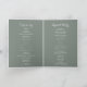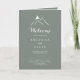 Dieses grüne, weiße Silhouette gefaltete Hochzeitsprogramm ist perfekt für eine rustikale Hochzeit. Das Design zeichnet sich durch handbemalte klare Berge aus. Geben Sie ein Angebot oder eine kurze Nachricht, die Reihenfolge des Dienstes, Hochzeitsfeier und Dankeschön Nachricht.