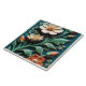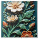 Vintage Keramik-Fliesen, die eine Wildblume-Szene mit weißen und orangefarbenen Blume darstellen, die in einer asymmetrischen vertikalen Komposition angeordnet sind, vor einem Meeresgrüngrund, was ein lebendiges und dekoratives Blumendesign schafft.
