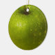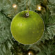 Nahaufnahme eines Single mit grünem Apfel. Der Apfel ist nass und stark mit Tropfen sauberen Wassers bedeckt. Keramik