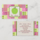 Eine Lehrer-Visitenkarte, die eine Illustration eines grünen Apfels innerhalb eines Quadrats mit grüner Ordnung auf Front kennzeichnet. Hintergrund auf Front und Rückseite ist Madras inspirierter karierter Patchworkentwurf. Personifizieren Sie den Text auf Front und Rückseite.