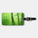 Grüner Bambus mit blassfarbenen Bokeh-Lichtern hin Gepäckanhänger