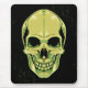 Kundenspezifisches schwarzes u. grünes Grunge mousepad/mousemata mit einer ausführlichen grünen beängstigenden gotischen Schädelvektorillustration. - www.vectorportal.com - ein cooles u. fantastisches ursprüngliches Geschenk für Jugendjungen und goths!