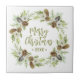 Grüne Blumenkiefern und weiße Blume Weihnachtskranz mit individualisierbarem Text - Frohe Weihnachten und das Jahr. Elegantes modernes Aquarelldesign.
