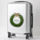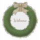 Dieser Aufkleber hat einen fröhlichen grünen Boxholzkranz, der mit einem Bogen und einem Namen oder einem anderen Gruß in der Mitte verbunden ist.