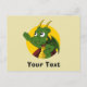 Personalisierte Postkarte mit Abbildung eines niedlichen kleinen, grünen, fliegenden Drachen, in gelben Kreisen, niedliche Fantasie / Märchen-Design für Kinder von Maxi Harmony