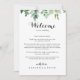 Dieser grüne eukalyptus botanische Hochzeitsbrief ist perfekt für eine moderne Hochzeit. Das Design verfügt über handgemalte, kunstvolle eukalyptus-grüne Blätter, die zu feinen Bouquets zusammengesetzt sind, um Ihre Veranstaltung zu verzieren. Personalisieren Sie die Front mit einer Begrüßungsbotschaft für Ihre Gäste und Ihren Namen. Personalisieren Sie den Rücken mit dem Veranstaltungskalender und anderen nützlichen Informationen.