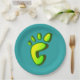 Eine coole Abbildung eines großen Fußabdrucks in einem lebendigen Farbverlauf, in grün und dunkelgrau, auf einem fröhlich türkisfarbenen Hintergrund.