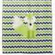 Duschvorhang mit marineblau, grün und weiß Zickzack Streifen und einem niedlich grünen Zickzack Fuchs!