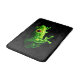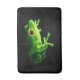 Ein fractalized grüner Frosch mit brennenden orange Augen gegen einen schwarzen Hintergrund.