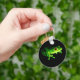 Ein gebrochener grüner Frosch mit feurigen orangefarbenen Augen vor schwarzem Hintergrund.