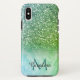 Dieser girly grüne Marmor und grüne Glittermobiltelefonkasten können mit Ihrem Name und Monogramm iphone xs Kasten personalisiert sein.