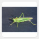 Grüner Grasshopper sitzend auf schwarzem Hintergru Quadratischer Aufkleber