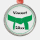 Das elegante Martial Arts Green Belt Premium Round Ornament kann mit dem Namen Ihres Kampfkünstlers und des laufenden Jahres gedruckt werden, um einem Gürtelranking-Test oder einer Werbeaktion-Prüfung zu gratulieren und zu gedenken. Dieses sportliche Ornament aus einer Art Kampfkunst zeichnet sich durch ein grünes Gürteldesign mit weißem Hintergrund aus.