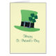 Handgeschnittener Grüner Hut und Klee mit schwarzem Band- und Silbergürtel-Clip und gelbem Hintergrund für St. Patrick's Day auf Grußkarte. *Alle Dinge, die Sie auf den Produkten sehen, sind handgefertigt, aber Sie müssen wissen, dass Sie ein Foto bekommen!
