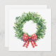 Diese Weihnachtskarte enthält einen grünen Kranz mit rotem Gingham-Bogen. Personalisieren Sie die Rückseite mit Ihrem Namen oder speziellen Text.