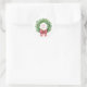 Dieser personalisierte Weihnachtsrundaufkleber ist mit einem grünen Kranz mit rotem Gingham-Bogen ausgestattet. Personalisieren Sie mit Ihrer Wahl von speziellem Text und Datum. Ideal für Geschenktaschen und Gastgeschenke.