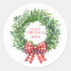 Grüner Kranz mit rotem Gingham Bow Runder Aufkleber