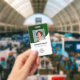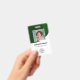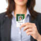Personalisieren Sie diese vertikalen grünen Abzeichen mit einem Mitarbeiter-Foto, Firmenlogo, Bar-Code, Mitarbeiter-ID und Namen.
