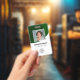Grüner Mitarbeiter - Foto, Logo, Strichcode, Name Ausweis