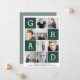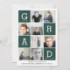 Dunkelgrüne moderne grafische Foto Collage Abschluss Karte. Eine moderne, grafische Multi-Foto-Abschluss-Karte. Ändern Sie einfach die Hintergrundfarbe, um die Karte zu personalisieren. Ideal, um eine Auswahl von Fotos oder Altersstufen Ihres Absolventen anzuzeigen. Teil einer koordinierenden Sammlung.