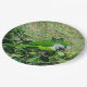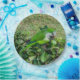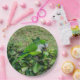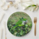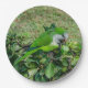 Grüner Papagei auf dem grünen Busch in einem Park in Spanien. Auch bekannt als Mönchssittich oder Quakerpapagei