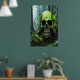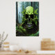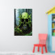 Ein Portrait eines grünen Schädels im Wald mit Bäumen im Hintergrund. Das ist eine künstlerische KI.