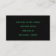 Dieser ist mit coolem schwarzem Hintergrund und grünem Text bedruckt und eignet sich ideal für diejenigen, die coole Visitenkarten suchen. Sie können den Text oder die Farbe ändern und Ihre eigenen Details auf beiden Seiten der Karte hinzufügen und nach Ihren Wünschen personalisieren!