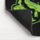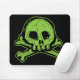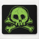Eine scribbly grüne und schwarze Grafik eines Totenkopfs mit gekreuzter Knochen.