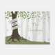 Eine Fußmatte, die eine Illustration eines Waldes mit einem Baum mit Grün-Blätter kennzeichnet, der Fahne hat, wickelte um Stamm ein. Personifizieren Sie die Namen.