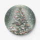 Grüner Weihnachtsbaum Bunte Ornamente Weißer Schne Pappteller