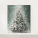 Grüner Weihnachtsbaum Bunte Ornamente Weißer Schne Wandteppich