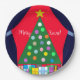 Grüner Weihnachtsbaum mit Blue Drapes: Pappteller