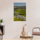 Grüner Weingarten und violette Blumen Poster