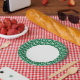 Abkürzungen weiße Chevrons Tropfen stilisierte Blumenmuster auf einem tiefen grünen Gitter © und ® Bigstock® - Alle Rechte vorbehalten.