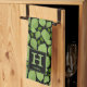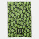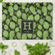 Grünes Basilikum Leaf Herb Muster Botanische Monogramm Küchentuch. Grüne Basilikum Blätter in einem Muster auf schwarzem Hintergrund. Fügen Sie Ihr Monogramm und Ihren Namen hinzu.