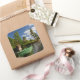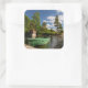 Grünes Boot in einem Fjord in Norwegen Quadratischer Aufkleber