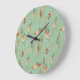 Grünes Feder-Muster SüdwestGeo-Schritt-| Große Wanduhr
