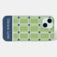 Heben Sie sich von der Masse ab mit dieser individuell anpassbaren iPhone-Hülle mit einem klassischen grün-weißen Fensterplaid-Muster, das mit navyblauen Quadraten akzentuiert ist. Das einfache Streifenmuster vereint modernen Minimalismus mit einer spielerischen Atmosphäre und ist somit das perfekte Accessoire für Frauen, Teenager und Mädchen. Personalisieren Sie es mit Ihrem Namen für eine einzigartige Note, die ganz Ihnen gehört. Ob Sie sich selbst damit verwöhnen oder es als Geschenk für einen Geburtstag, Feiertag oder einen anderen besonderen Anlass verwenden, diese monogrammierte iPhone-Hülle wird Ihrem Telefon einen Farbtupfer hinzufügen.