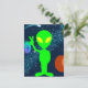 Ein alien, welches das Friedenszeichen mit seiner Hand macht. Heraus im Raum, in L mit Planeten und in den Sternen hinter ihm. Einer der Planeten ist Erde.