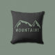 Ein schwarzes Kissen mit grünen Bergen für die Zuhause-Dekoration von Wanderfreunden und Outdoor-Abenteuern. Es ist mit einem personalisierbaren Text, das ist perfekt für ein Geschenk!
