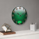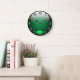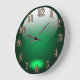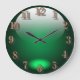 Eine große Uhr mit einem glänzenden Glashintergrund in Grün