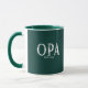 Opa Kaffee Tasse Design mit einem Jahr mit einem weißen gestempelten Schriftart Set auf einem Hunter Green Hintergrund. Klicken Sie auf anpassen, um die Hintergrundfarbe zu bearbeiten!. Besuchen Sie unseren Shop, um diese Tasse in einer großen Auswahl von Großvaternamen zu sehen.