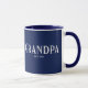 Opa Kaffee Tasse Design mit einem Jahr mit einem weißen Stempel Schriftart Set auf einem blauen Hintergrund. Klicken Sie auf anpassen, um die Hintergrundfarbe zu bearbeiten!. Besuchen Sie unseren Shop, um diese Tasse in einer großen Auswahl von Großvaternamen zu sehen.