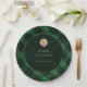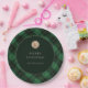 Verleihen Sie Ihren Feiertagsfeiern mit unseren eleganten personalisierten Weihnachtsfeier-Tellern mit grünem Karo-Muster eine besondere Note. Das Design zeigt ein klassisches grünes Karo-Muster, das durch einen dunklen Kreisrahmen in der Mitte perfekt ergänzt wird. Ein goldener Hirsch-Silhouetten-Stempel verleiht eine Note der Raffinesse, während die festliche Botschaft „Frohe Weihnachten“ den Geist der Saison herzlich einlädt.
