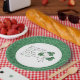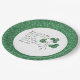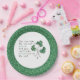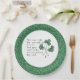 Eine Chic Papierplatte, mit grünem Kleeblatt-Blätter und einem Waliser-Sprichwort in den keltischen Skripten, auf einem weißen Hintergrund, umgeben durch ein ditzy Kleeblattmuster. Teil der Sammlung der Posh u. Painterly "Kleeblätter.