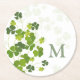 Grünes, modernes Kleeblatt Bouquet Monogramm Design. Ein sehr hellgrünes Kleeblatt-Bouquet im Hintergrund mit stärkeren grünen Farben im Vordergrund mit Monogramm