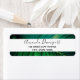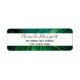 Adressetiketten mit einem Foto eines grünen tropischen Blattes, das einige lebendige Palmenfronten zeigt. Ein rechteckiger Rahmen, der oben mit dem Text im Inneren platziert ist.