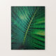 Ein Puzzle mit einem Foto aus einem grünen tropischen Blatt, das einige lebendige Palmenfronten zeigt.