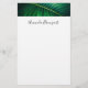 Schreibpapier mit einem Foto aus einem grünen tropischen Blatt mit einigen lebhaften Palmenfronten.
